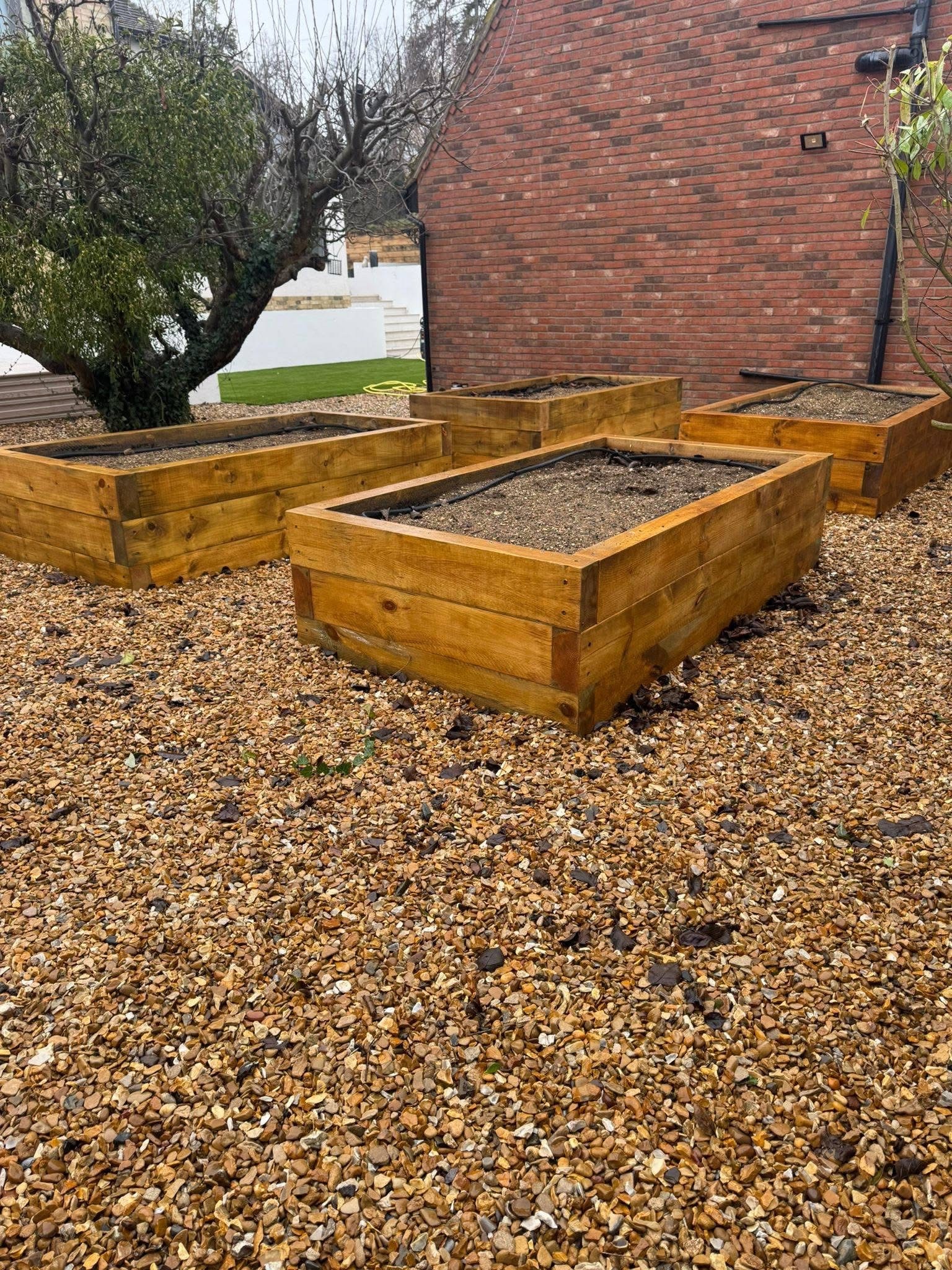 A bespoke planting area installed in Royston, Hertfordshire, designed to complement the surrounding landscaping. This project included prepared planting beds, quality soil improvement, and a mix of seasonal plants to create a vibrant and long-lasting garden feature.
